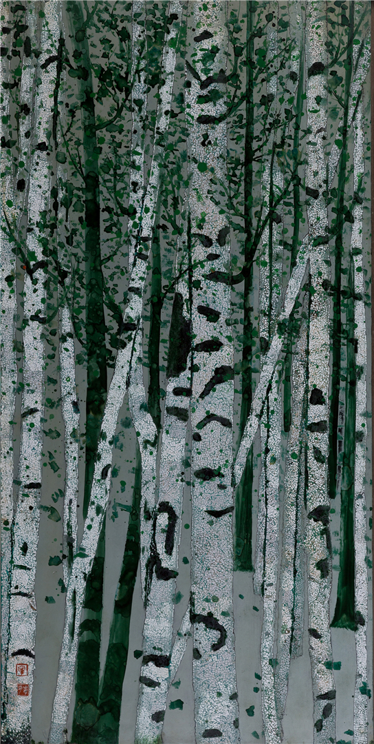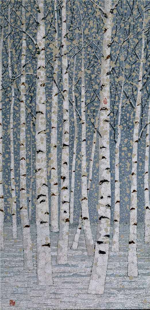 1988年拜漆画家乔十光先生为入室弟子,宁保平拜师霍春阳,吴冠中学习油画,